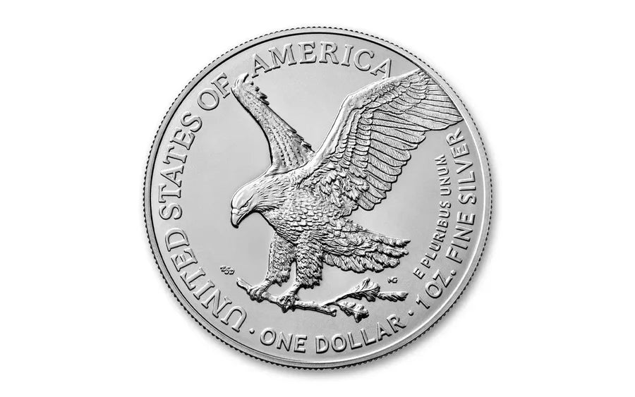 The American Silver Eagle is one of the world’s most trusted silver bullion coins, recognized globally for its purity, weight, and government guarantee. Each coin is minted in one troy ounce of .999 fine silver and features the iconic Walking Liberty design on the obverse.